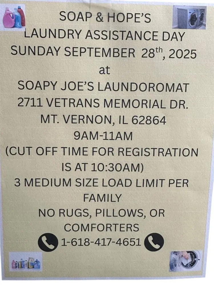 Soap & Hope’s Laundry Assistance Day – September 28th